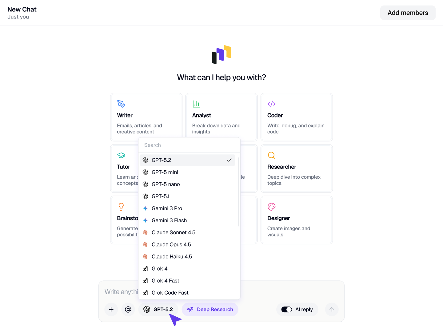 But here's the reality: no single AI model is best at everything. And paying $50-60/seat to each vendor adds up fast. A 50-person team could easily spend $60,000+ per year on AI subscriptions.